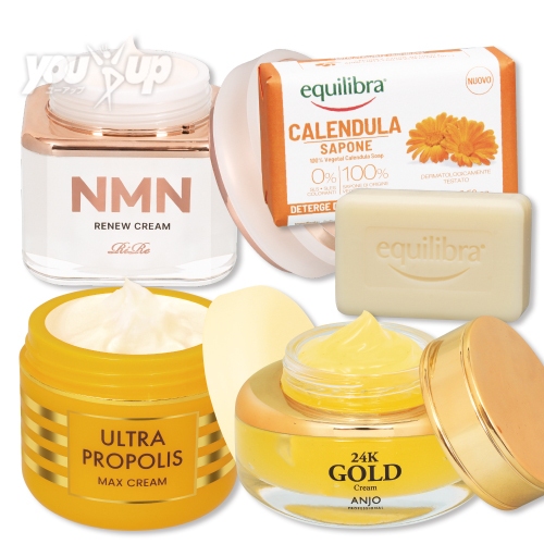 | 内容量 | [NMN&PDRNオールインワンクリーム]50g [ウルトラプロポリスMAXクリーム ]50ml [24Kゴールドオールインワンクリーム]50g [引き締めカレンデュラ100%石鹸]100g |