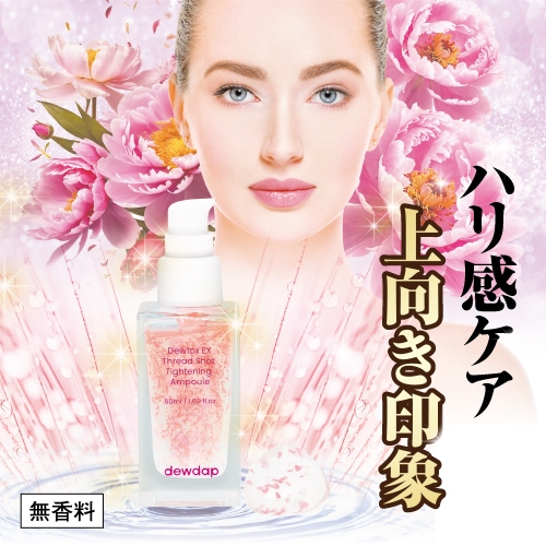 また、有効成分が凝縮されたピンク色の解ける糸状のものは肌になじませると解けるように広がり、うるおいを与えながら肌表面に密着します。