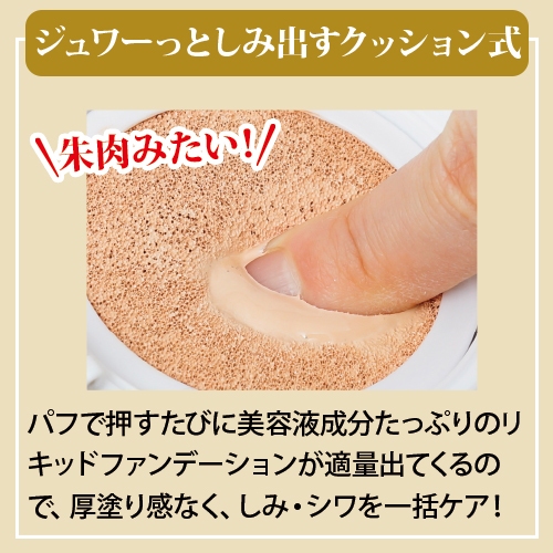 軽いつけ心地なのに、肌に密着し長時間美しい肌をキープながらしっとりツヤ感を演出します。