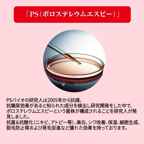 特許を取得した天然植物由来成分のPS(ポロステレウムエスピー)は、強力な免疫力を持つβグルカンが多量に含まれており、全身のあらゆる肌環境をグングン整えます。