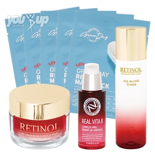 水、PG、グリセリン、BG、チャ葉エキス、フェノキシエタノール、カルボマー、TEA、ポロキサマー235、ポリソルベート20、レチノール、ベタイン、ヒドロキシエチルセルロース、1,2-ヘキサンジオール、アスコルビン酸Na、没食子酸エピガロカテキン、EDTA-2NA、アラントイン、香料、BHT、BHA、エチルヘキシルグリセリン、リン酸Na、オリゴペプチド-1、水添レシチン
