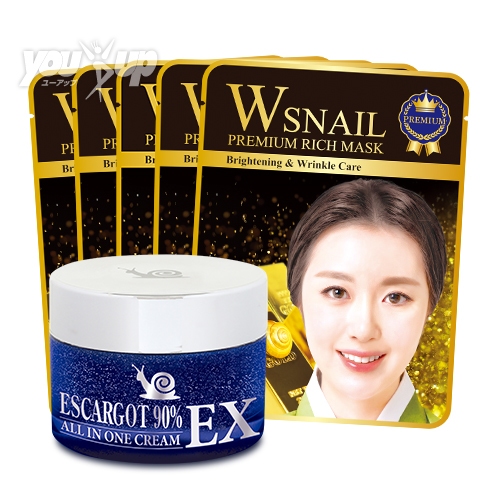商品の特徴かたつむり粘液配合オールインワンクリームとパックの特別セットです