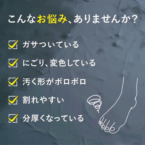 有効成分が硬く分厚くなった爪やガサガサで割れやすい爪に密着し、潤いを与え、つるんとツヤのある爪に導きます。